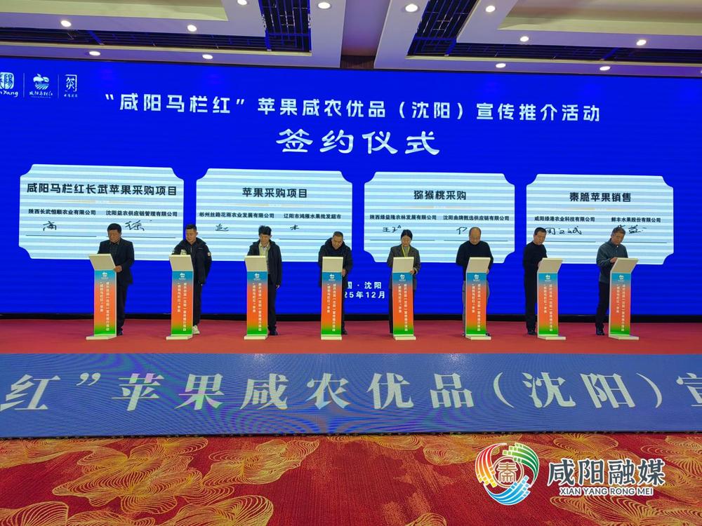 咸阳佳果香飘沈阳城,两地携手共绘新画卷。12月9日,2025“咸阳马栏红”苹果咸农优品(沈阳)宣传推介活动在沈阳市举行。一场连接渭北高原与东北黑土地的“甜蜜之约”,吸引了众多沈阳市民、采购商及两地企业代表,现场品鉴洽谈和签约。