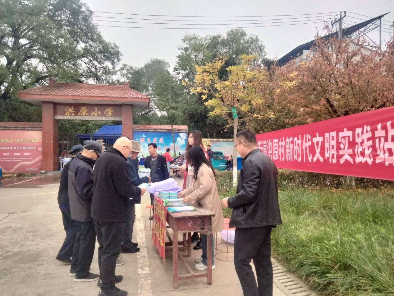 工作人员向群众发放宣传手册(陈仓区委宣传部供图)