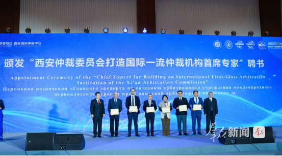 西安仲裁委员会聘任彼特·布什、朱利安·谢斯、芭芭拉·马里内洛、鲁斯塔姆别科夫·伊斯兰别克、迪约尔别克·基姆萨诺夫、乌舒洛娃·索菲亚·拉玛扎诺夫娜、阿谢丽、董箫、约翰·克鲁克、赵荣为“西安仲裁委员会打造国际一流仲裁机构首席专家”,西安仲裁委员会名誉主任孙宪忠与西安仲裁委员会主任李洪涛共同颁发聘书。