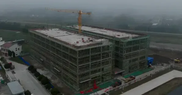 “我们项目总占地面积约为3万平方米,共设计3栋厂房。目前2号、3号厂房已经完成了封顶工作,总工程进度达到60%。现有工人约100人,主要进行两栋厂房的砌墙工作以及拆除部分钢筋,整体完工时间在2026年10月份。”项目负责人许涛介绍。