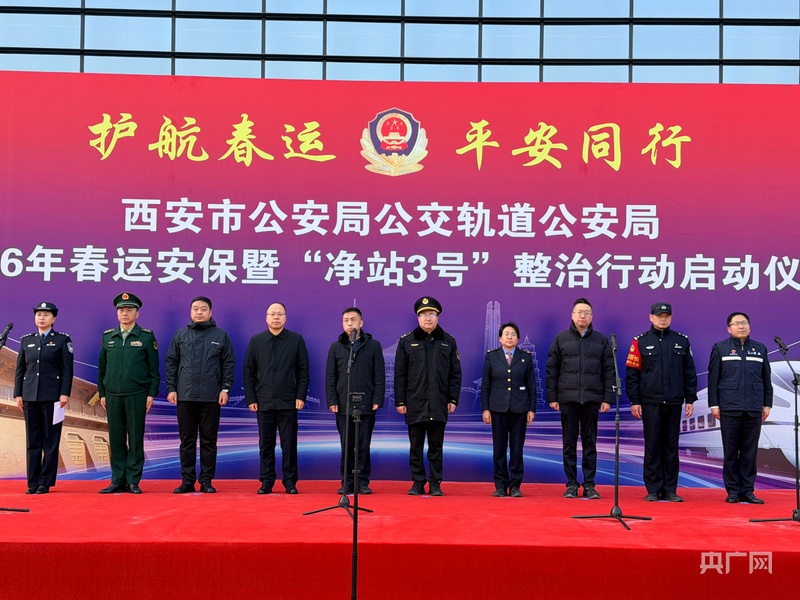 央广网西安2月4日消息(记者苏睿楠)为全力保障2026年春运期间全市公共交通领域安全有序,全面提升治安防控和服务保障水平,2月2日上午,西安市公安局公交轨道公安局在西安火车站北广场举行2026年春运安保暨“净站3号”整治行动启动仪式。