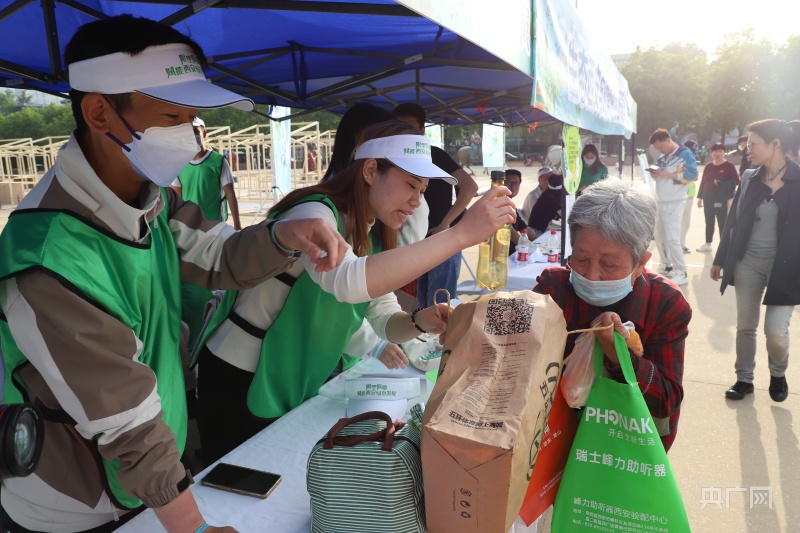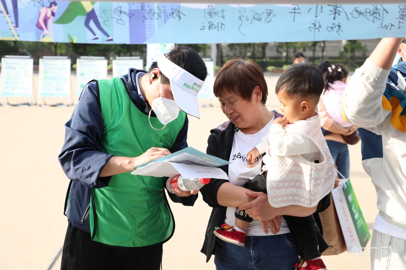活动现场工作人员正在引导市民线上参与《限塑调查问卷》(央广网记者 侯凯奇 摄)