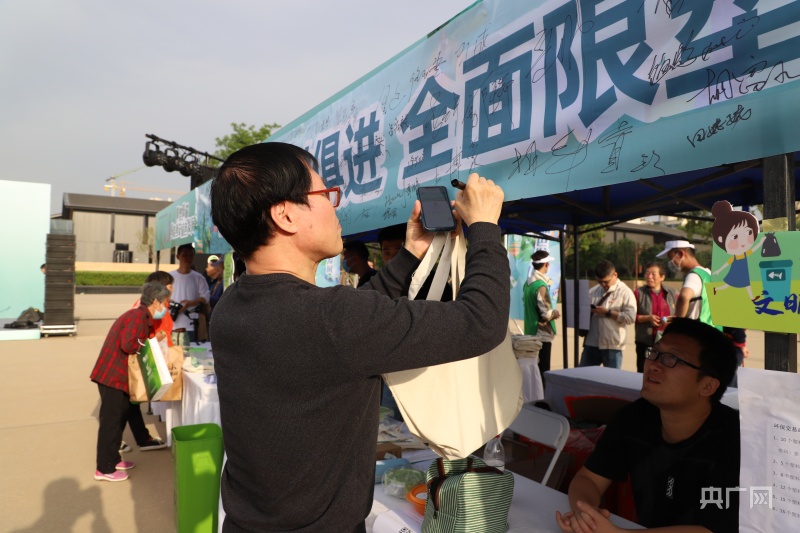 同时,现场市民纷纷拿出手机,线上参与《西安市塑料污染治理情况调查问卷》,为西安限塑工作建言献策。