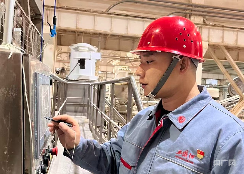 沈晓亮检查设备运行情况(央广网记者 陈锵 摄)