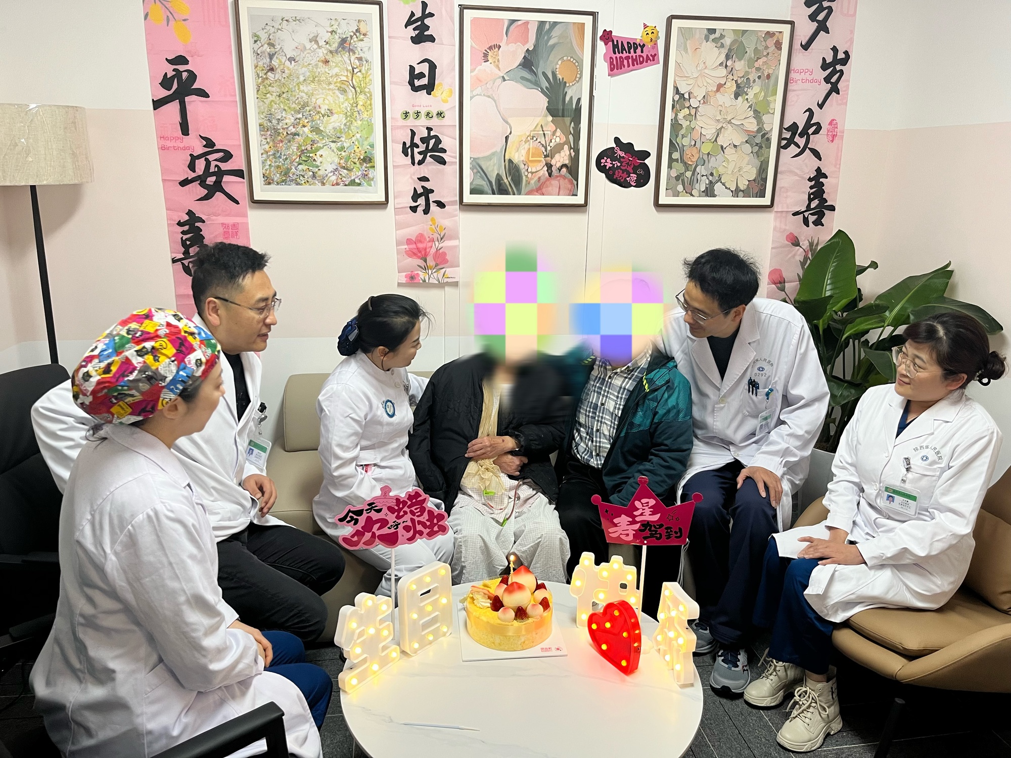 “我们中心有一个不成文的规定,对每一个住院患者,如果她住院期间过生日,我们就会给她过个生日。”韩丕华解释说,“老人这么大年纪了,可能也没有认认真真过过生日,在出院之前,给她送上一个祝福,也是我们科室人性化管理的一个体现。”