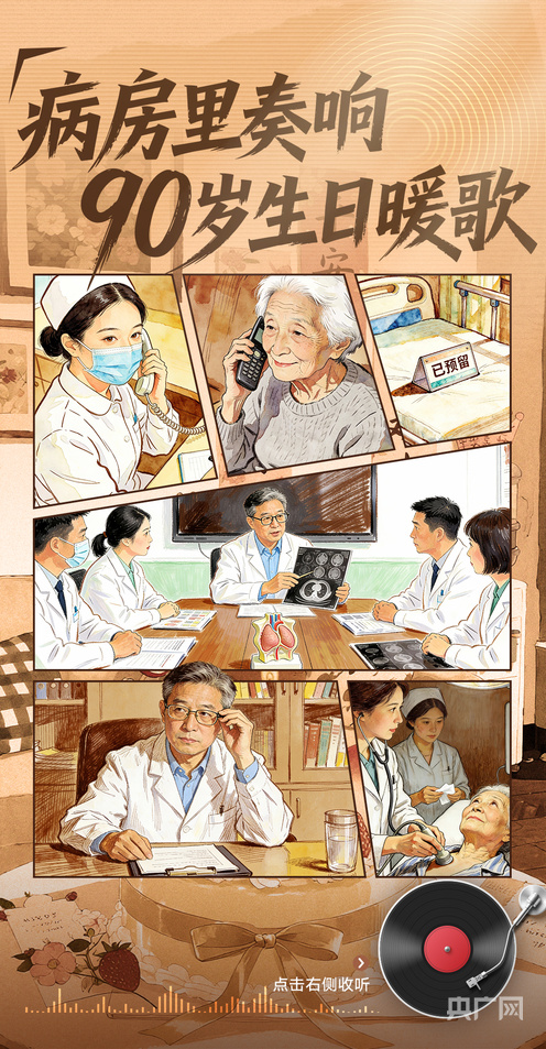 央广网西安12月20日消息(记者刘昱 实习记者高悦 杨雯欣)在医院走廊弥漫的消毒水气味中,一阵轻柔的生日歌从乳腺诊疗中心传来。2025年10月23日,90岁的王奶奶在陕西省人民医院乳腺诊疗中心病房里,迎来了她人生中一场特殊的生日庆祝。