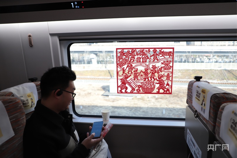 西延高铁首发列车上,非遗窗花扮靓车厢(央广网记者 侯凯奇 摄)