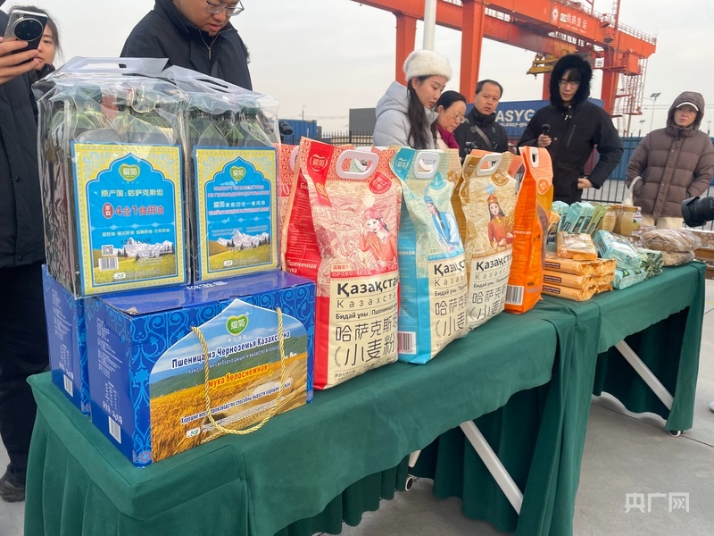 央广网西安1月27日消息(记者刘昱 实习记者李梓萌)“这趟班列带过来的有哈萨克斯坦的成品粮油、蜂蜜、面粉等农产品,快到中国春节了,希望这些产品能丰富中国人民的餐桌。”哈萨克斯坦驻西安总领事克拉巴耶夫·佐齐汉介绍。