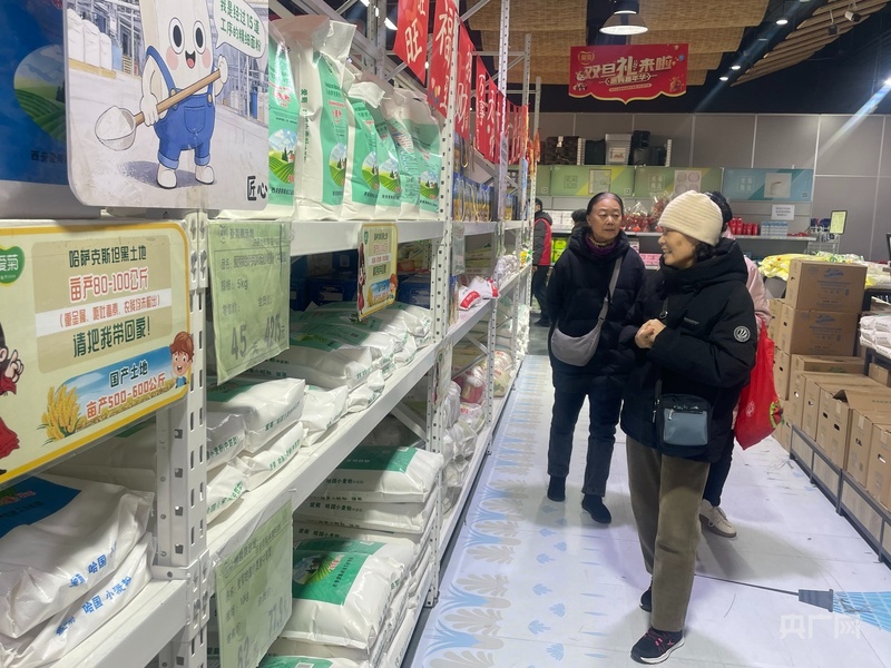“我之前就买过哈萨克斯坦产的这个面粉,很筋道。今天在手机上看到这里有年货集市,还有很多外国产品,我就跟朋友一起来逛逛,置办点年货。”西安市民梁女士在爱菊展示馆进口食品区挑选年货。
