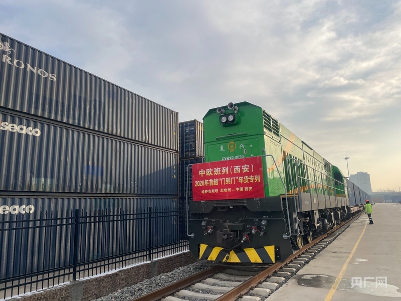 1月21日,2026年首趟中欧班列“门到门”年货专列顺利抵达西安(央广网记者 刘昱 摄)