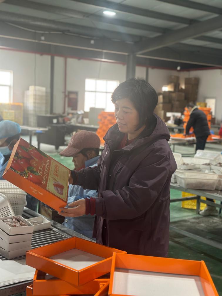 2026年2月10日,田晓燕在仓储车间和工人一起分拣、打包、装箱柿饼。新华社记者王泽昊 摄