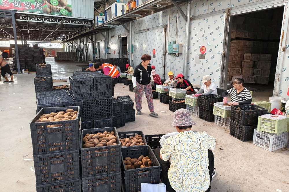 龙飞果业合作社冷库建成后工人们正在分拣猕猴桃(建设银行陕西省分行供图)