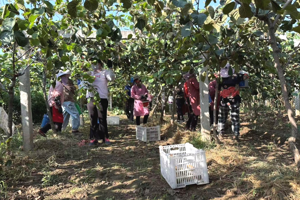 果农们在猕猴桃丰收季采摘果实(建设银行陕西省分行供图)