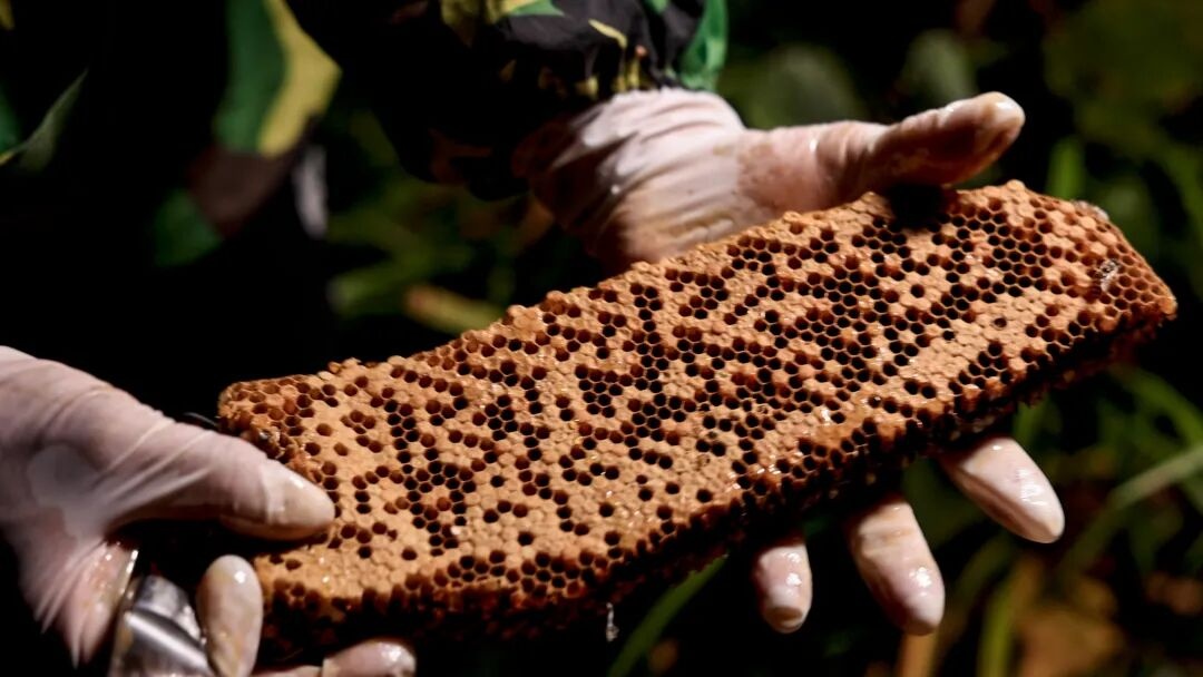 蜂农拿着刚割下来的蜂蜜(留坝县文化和旅游局供图)