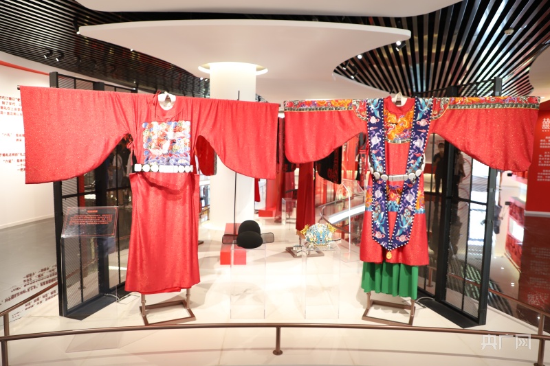 婚姻文化体验馆里的传统婚服(央广网记者 舒隆焕 摄)