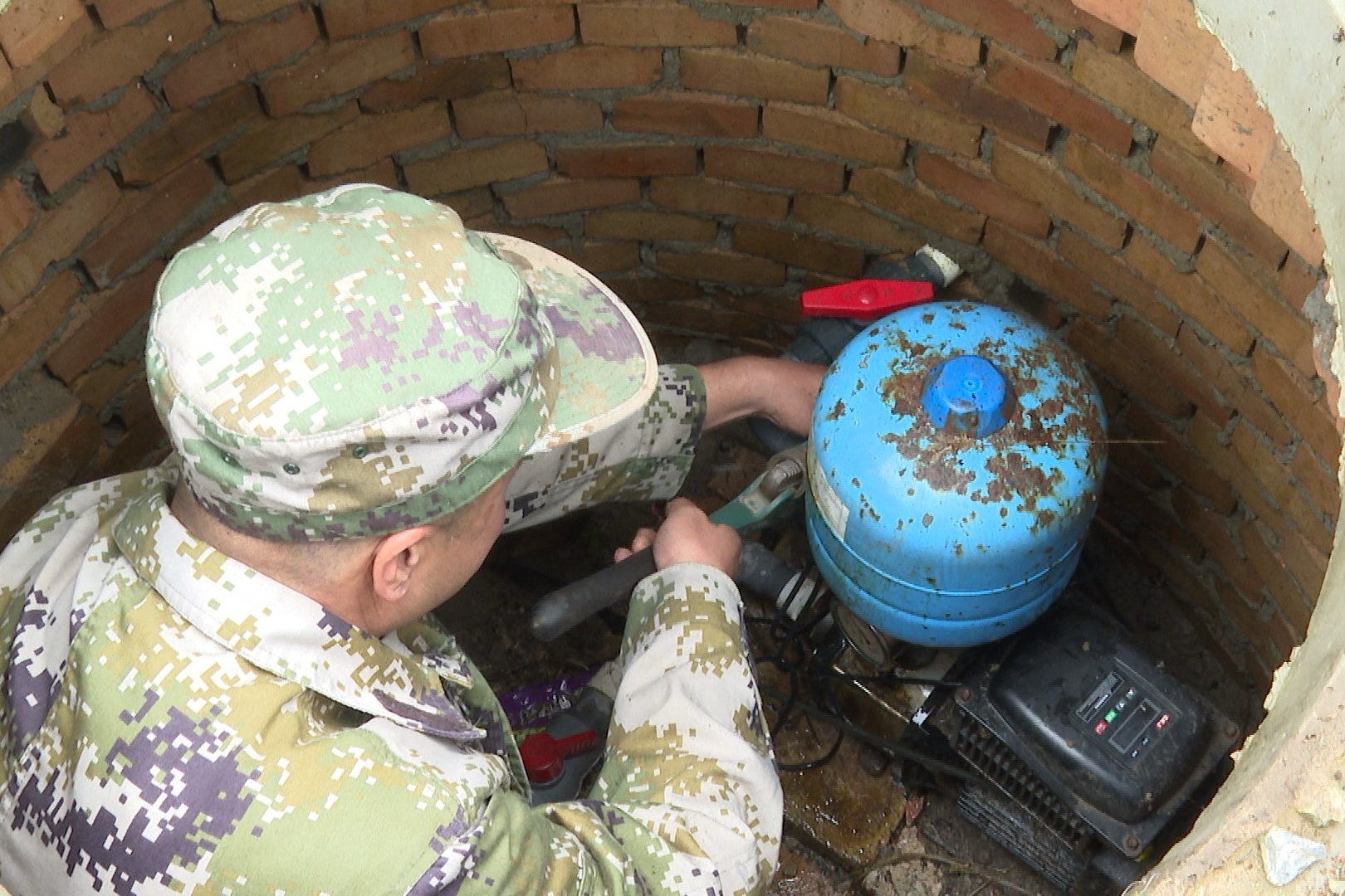 社区工作人员在修理漏水阀门(印台区委宣传部供图)