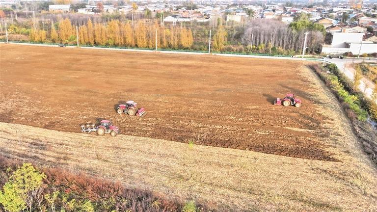 11月10日,在西安市鄠邑区甘河街道侯王村,金辉种植专业合作社理事长张辉指挥农机在不同地块间穿梭。“这块地10月15日就收完了,但一直空着,因为墒情过多,机械下不了地。”张辉指着眼前的土地说,“你看,同一块地,南边地势高,墒情合适了,我们就先犁先种;北边地势低,还太湿,就再晾一下。这叫‘以墒情定播期’。”
