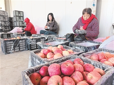 此刻,6公里外的井坳村,陕西美源现代化农牧业有限公司的包装车间里,工人杨芳梅和吴艳艳等人正熟练地分拣、包装着最后一批秦脆苹果,即将发往浙江温州、江西南昌等地。