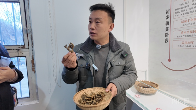 鲁文韬介绍黄连的药用价值(央广网记者 苏睿楠 摄)
