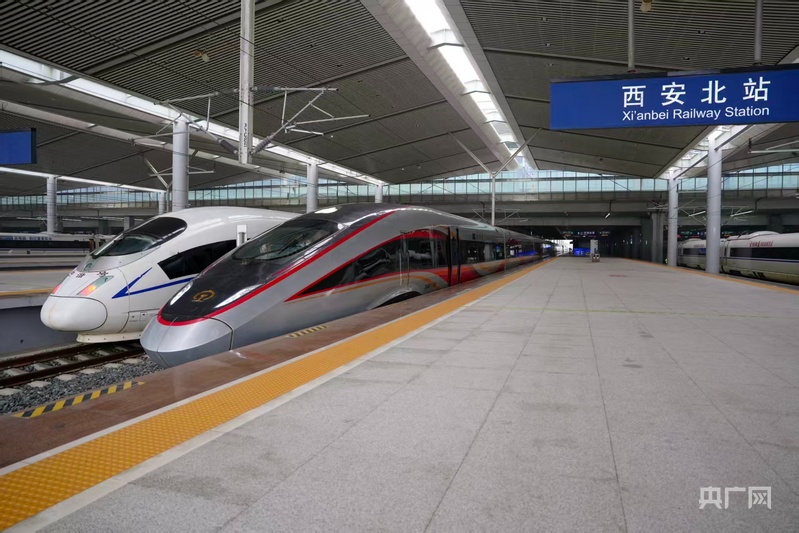列车缓缓驶出西安北站(央广网发 尤艇摄)