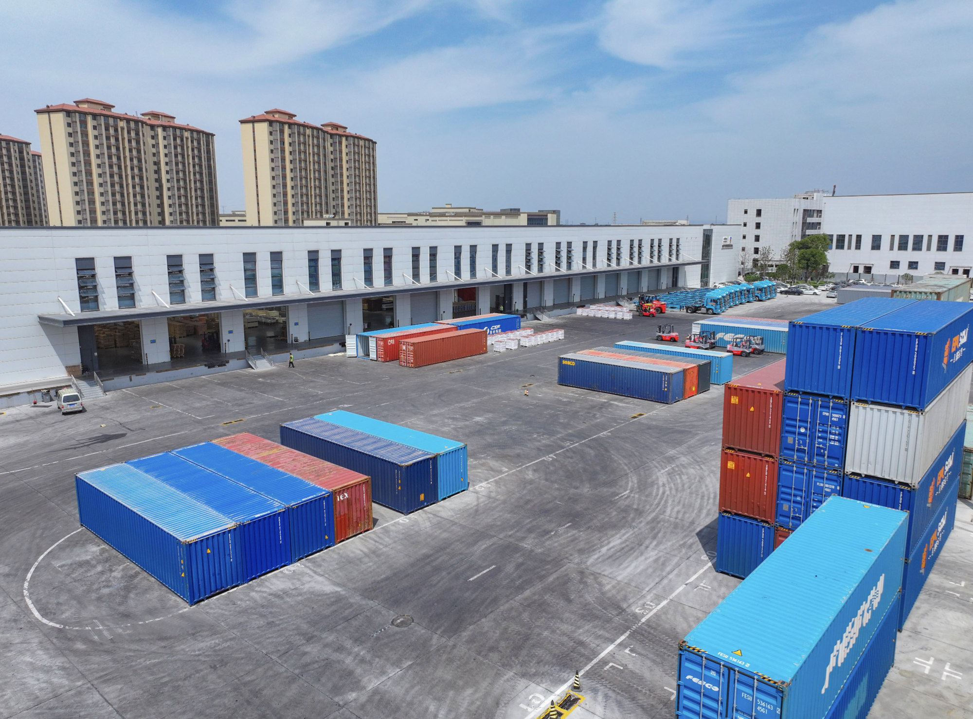 2025年6月,在西安浐灞国际港的哈萨克斯坦西安码头,来自上海、苏州、合肥、株洲等地的各类货物等待被运往中亚(央广网发 西安浐灞国际港供图)