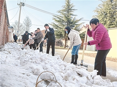 1月28日,记者走进淳化县十里塬镇庄子村,街道宽敞整洁,白墙灰瓦的房屋错落有致。村口一辆电动三轮车旁,村民白耀民正挥动铁锨,将车厢里的积雪扬进田间,既是清雪护路,也为滋润沃野。