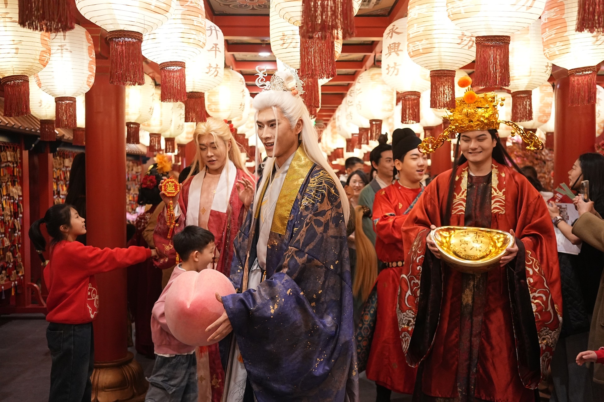 春节期间,街区NPC正在与游客互动(央广网发 长安十二时辰供图)