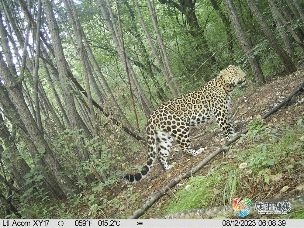 金钱豹在林区穿行