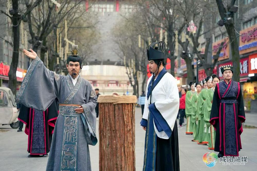 秦力以“徙木立信”为例:“商鞅‘徙木立信’的故事,本质是讲诚信。今天我们在咸阳老街看到‘徙木立信’的实景演绎,孩子亲手参与‘搬木’游戏,这就是秦礼精神的活态传承。”