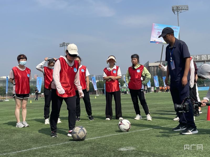 蒙眼射门比赛现场(央广网记者刘昱 摄)