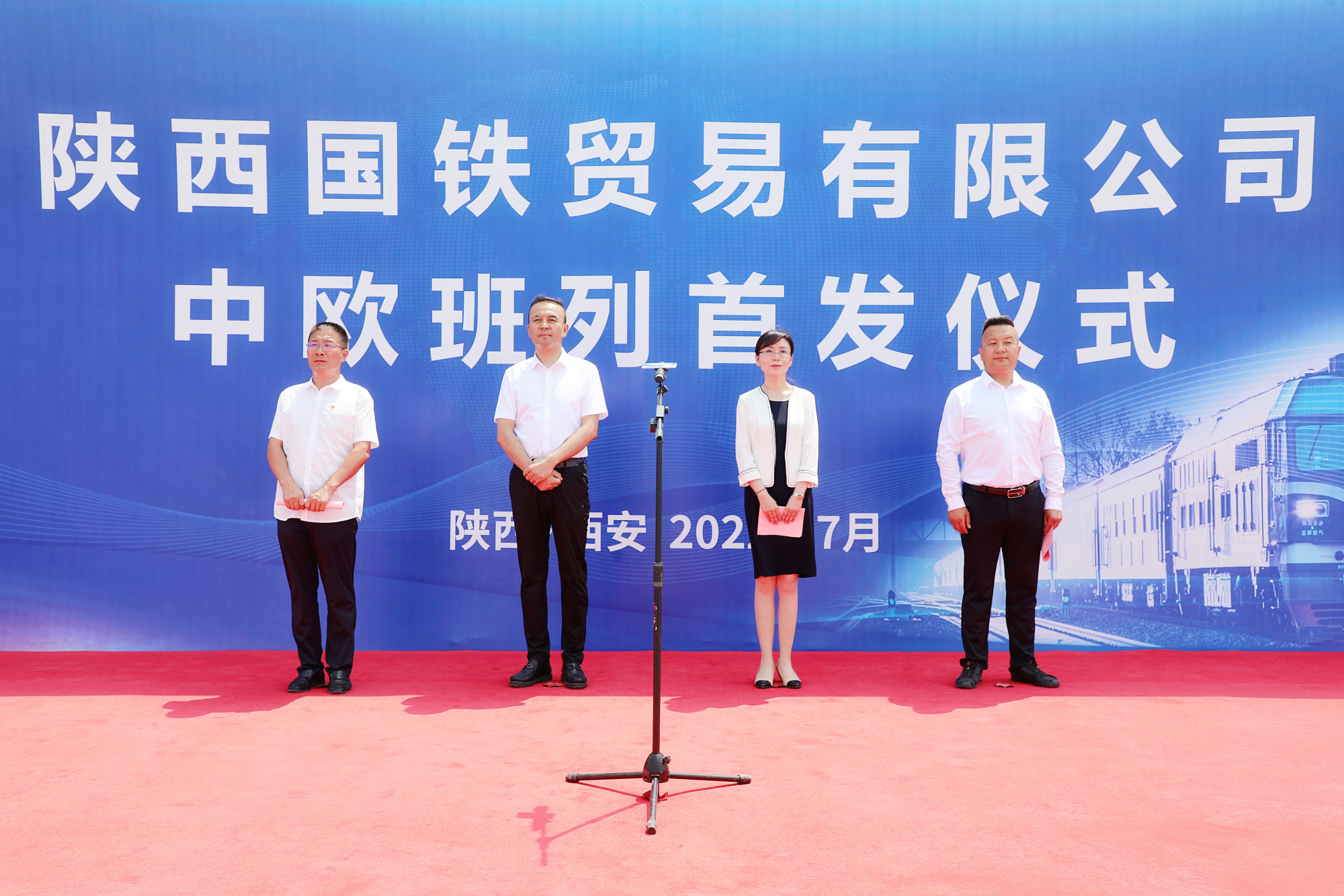 7月31日下午,陕西国铁贸易有限公司中欧班列首发仪式在西安国际港站举行。