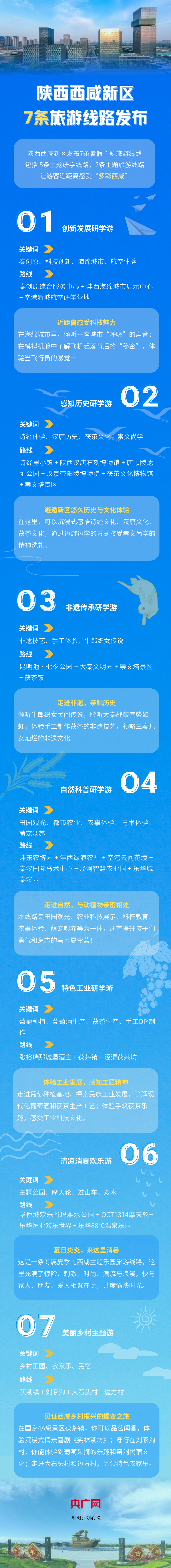 据了解,这7条线路包括创新发展研学游、感知历史研学游、非遗传承研学游、自然科普研学游、特色工业研学游、清凉消夏欢乐游、美丽乡村主题游等,带你在休闲娱乐的同时,感知历史、体验文化、亲近自然,近距离感受“多彩西咸”。