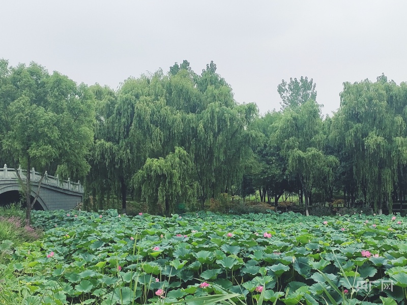 该公园位于渭河与灞河交汇处,占地面积4715亩,其中近二分之一为水域面积。盛夏7月,不少附近群众来此赏荷、遛娃,畅意地呼吸着新鲜空气。还有初来西安的大学生慕名前来。