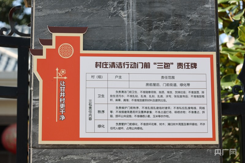甘井村住户门前的“三包”责任牌(央广网发 王琨 摄)