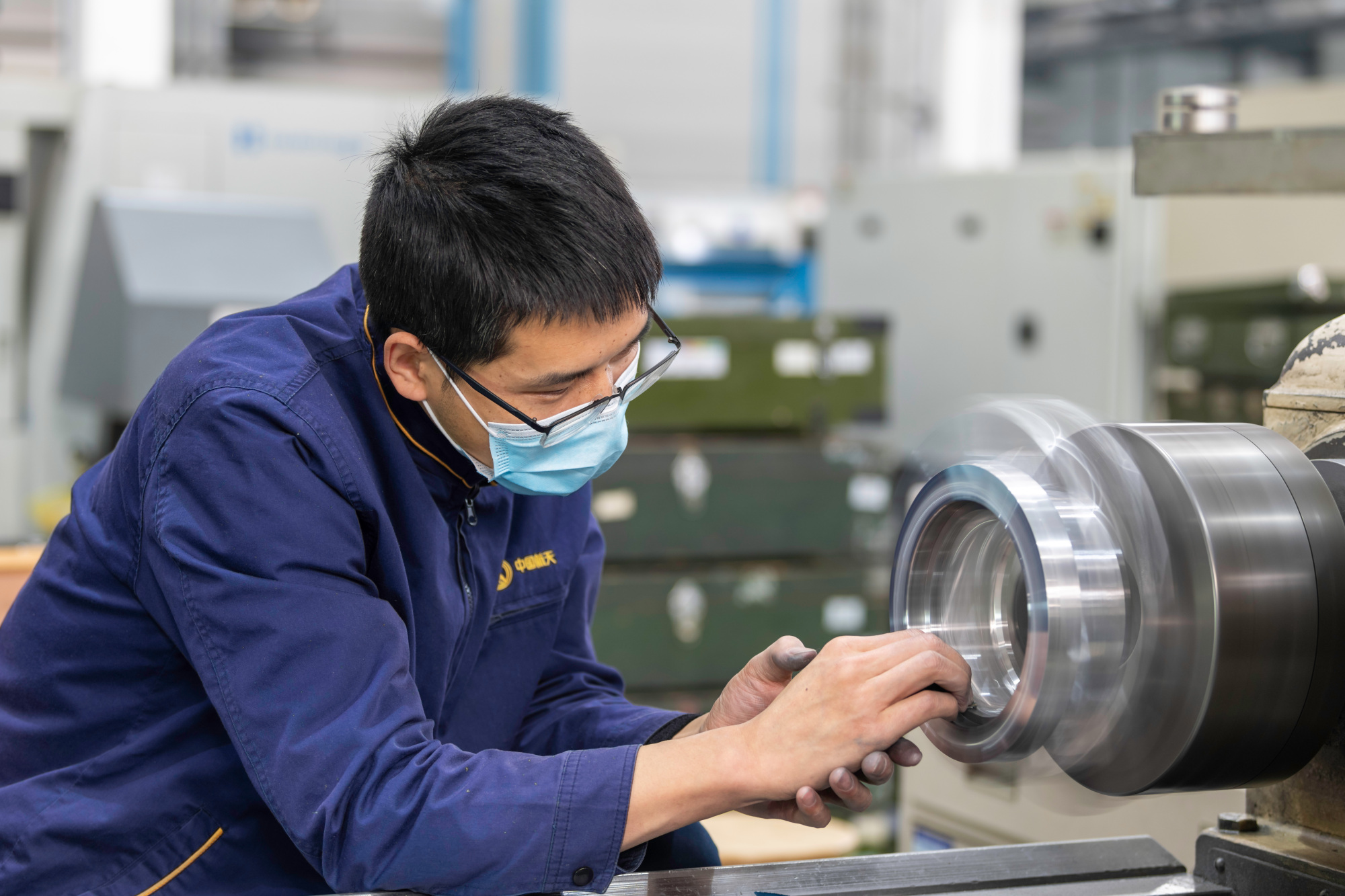 西安航天发动机有限公司技术人员对产品表面进行抛光操作(央广网发 西安航天基地 供图)