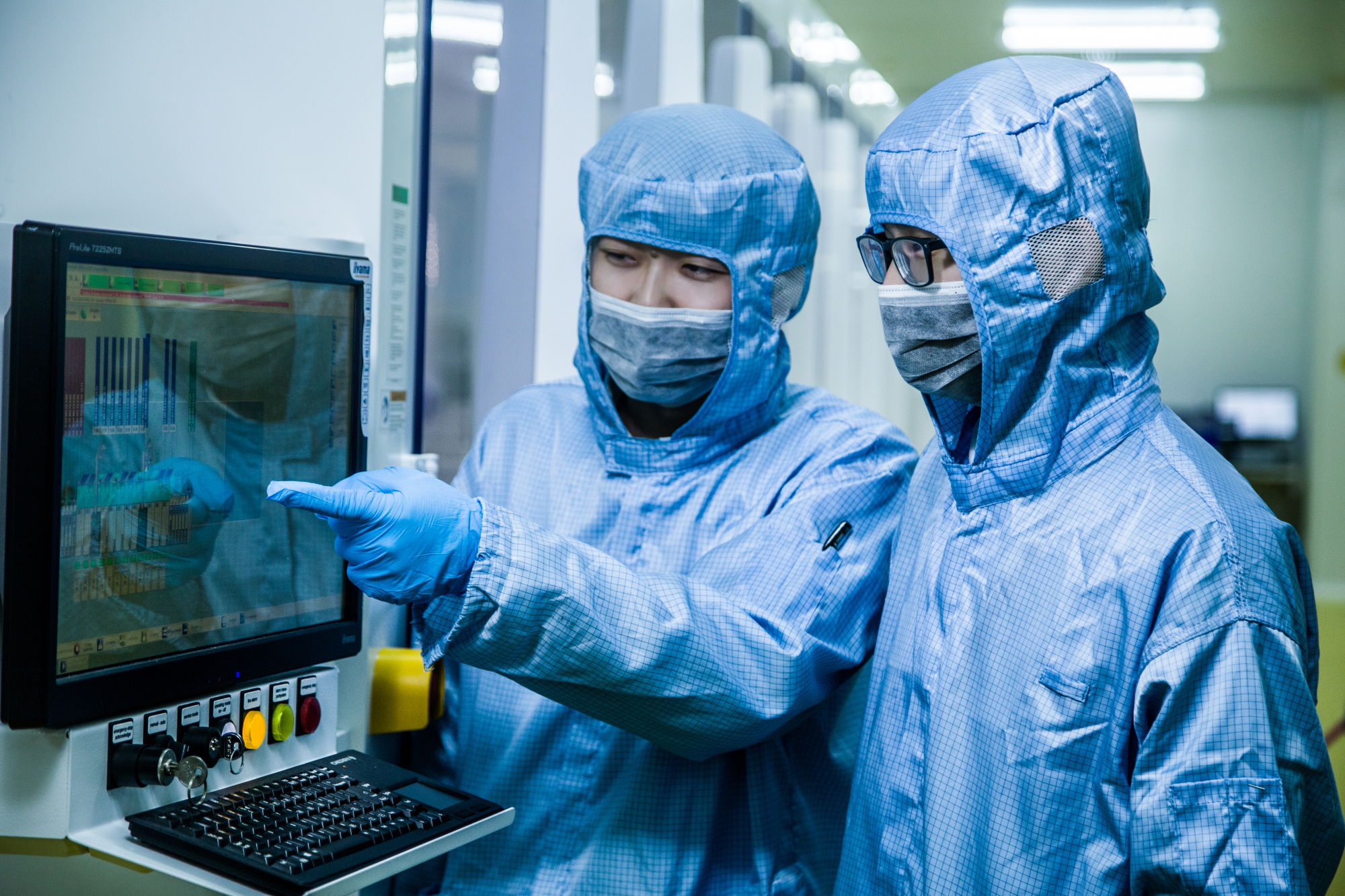隆基股份科研人员正在分析实验数据(央广网发 西安航天基地 供图)