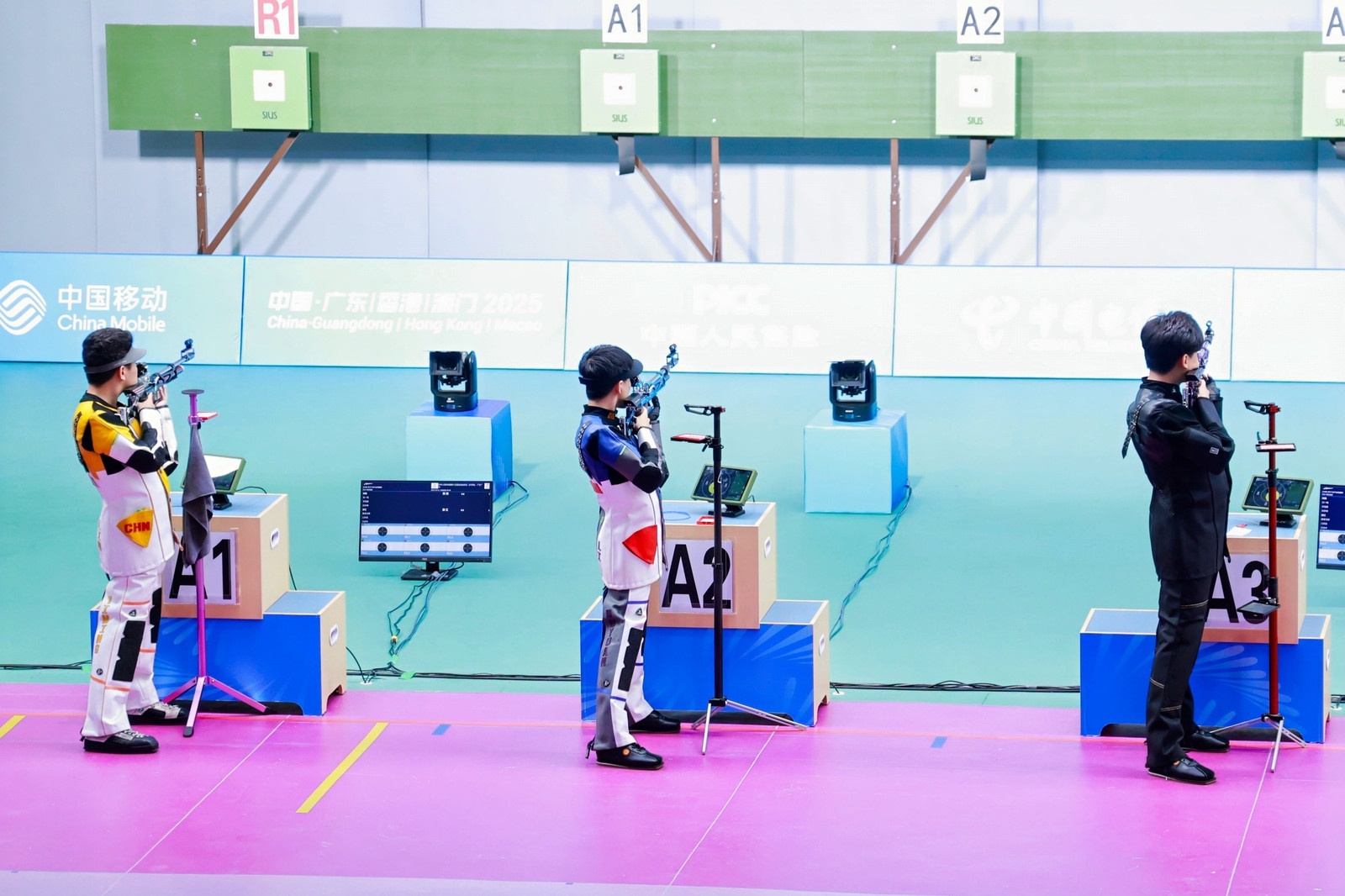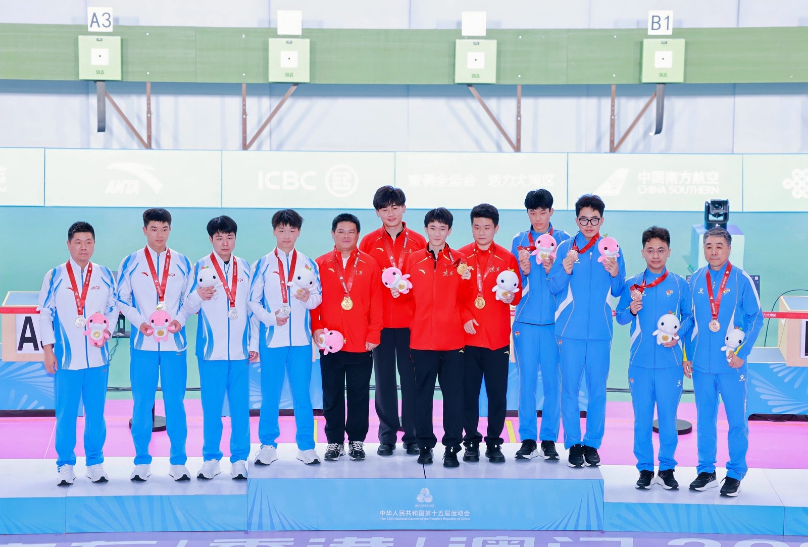 10月15日,第十五届全国运动会男子10米气步枪团体决赛在广东省广州市举行。由刘宇坤、李牧原、刘一鸣三人组成的陕西队对阵浙江队。