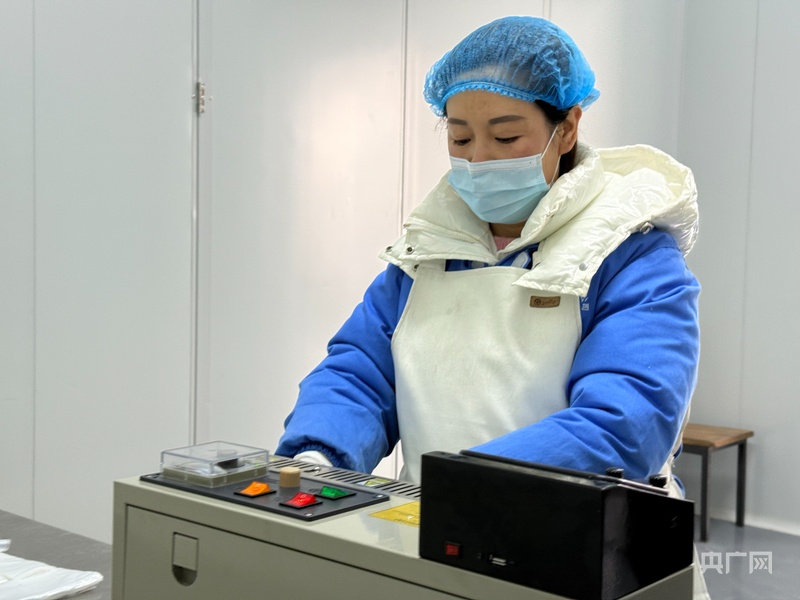 延安子长市规模化社区工厂内,工人正在封装食品(央广网记者 陈锵 摄)