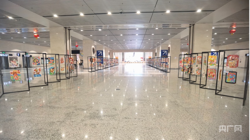 航站楼内的杨柳青木版年画展示区(央广网发 李籽彤 摄)