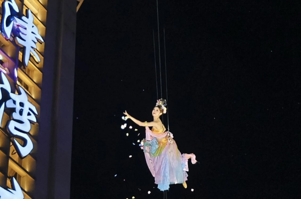 “洛神塔赋”威亚飞天舞表演(央广网发 津湾广场供图)