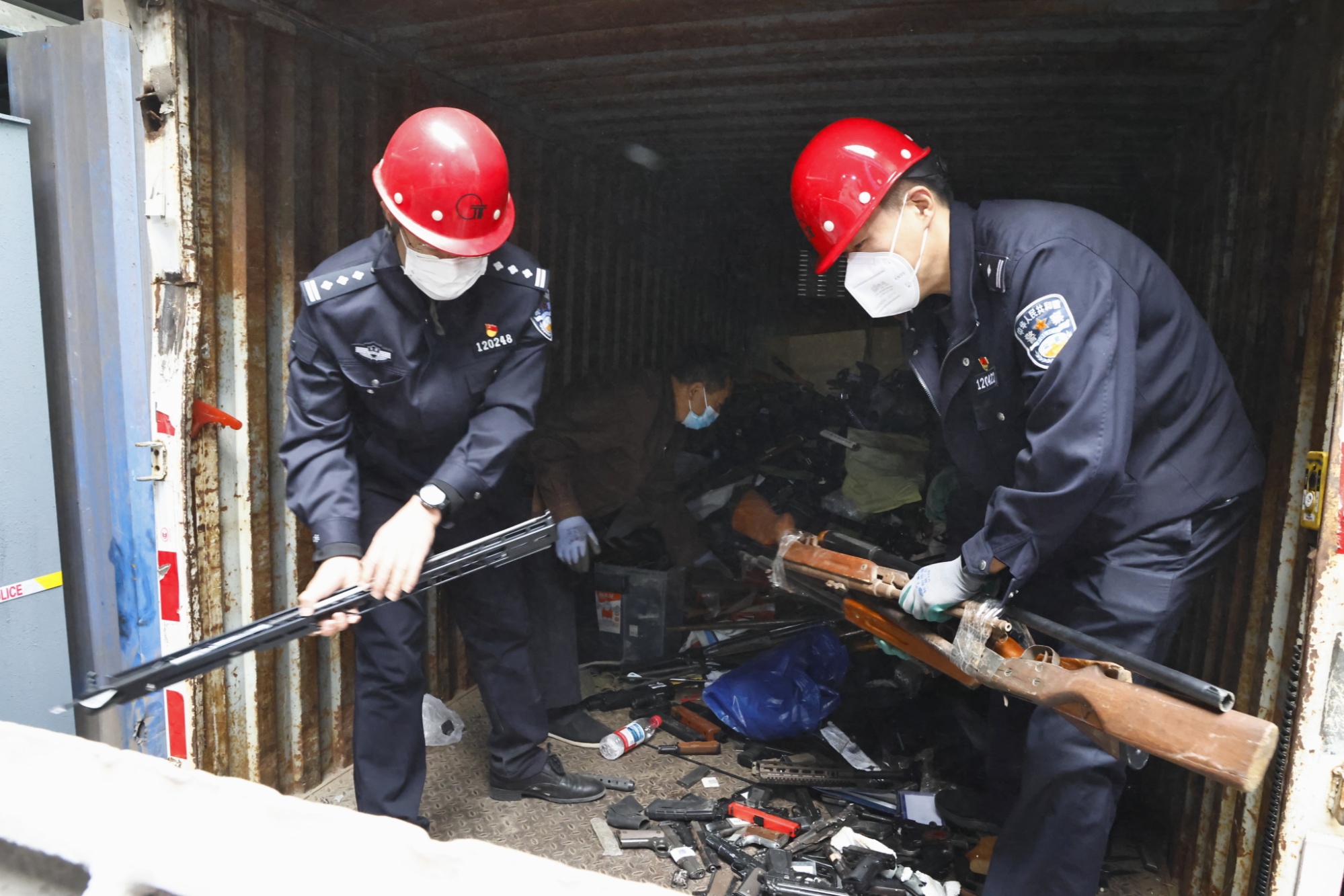 央广网天津11月2日消息(记者韩雨晨)为充分展现公安机关打击整治枪爆违法犯罪的战果和成效,宣传非法枪爆物品的严重社会危害性,增强广大群众自觉抵制非法枪爆物品的法制观念和安全意识,凝聚社会各界参与支持防范打击枪爆违法犯罪工作合力,推动打击整治枪爆违法犯罪专项行动深入开展,按照公安部统一部署,日前,天津市公安局以“消除枪爆隐患 警民共创平安”为主题,组织开展2025年全国公安机关集中销毁非法枪爆物品天津现场活动,对清查收缴的143支非法枪支和640件仿真枪、弩、管制刀具,进行集中销毁。