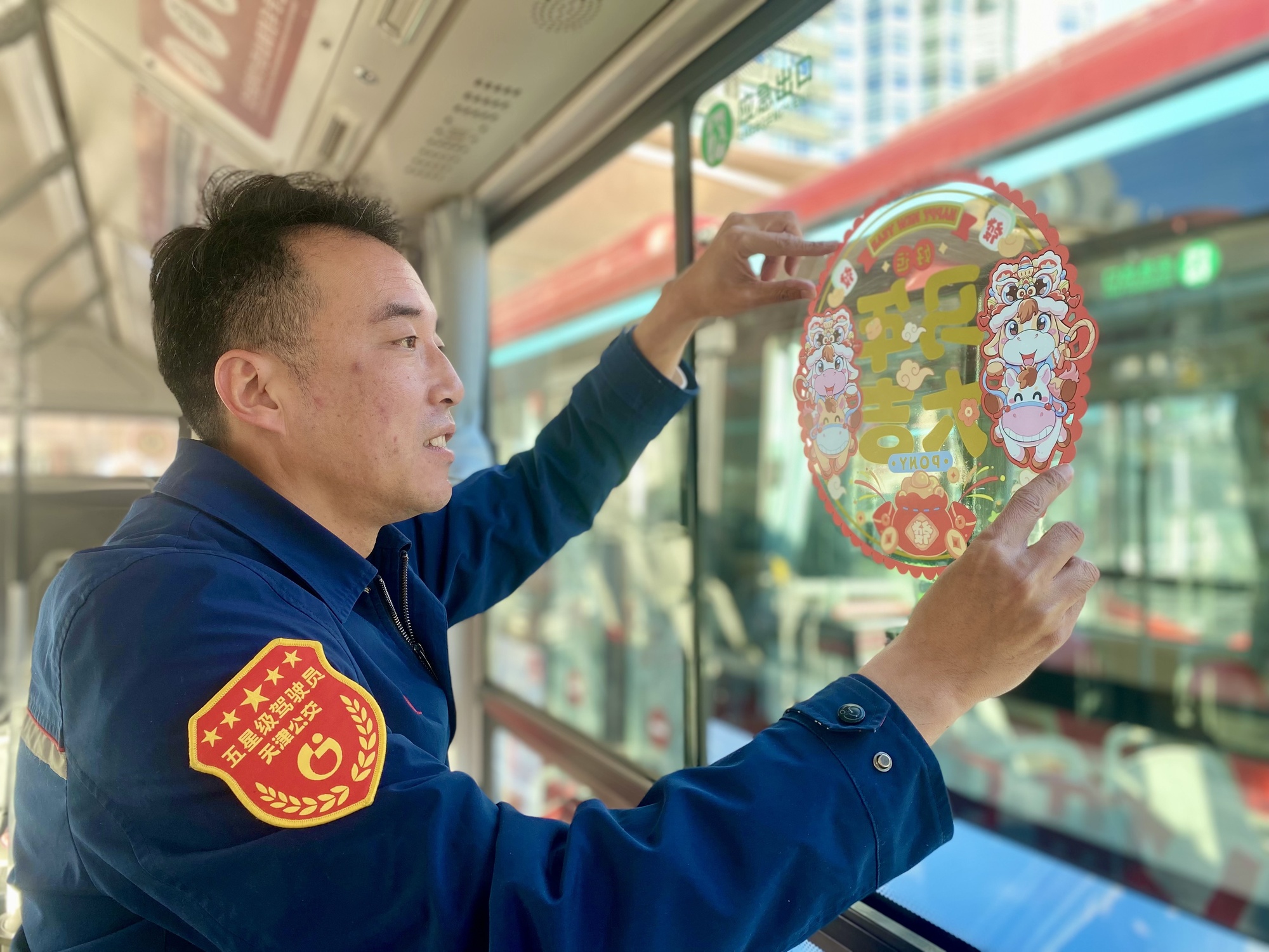 在海河教育园中心车队,655路“青年文明号”的青年职工们则打造出了“移动的节日风景线”。除了传统的灯笼、窗花装饰外,他们还在车厢尾部精心设置了毛绒玩具区,色彩鲜艳的玩偶与整洁的车厢相映成趣,吸引了大小乘客们拍照打卡留念。