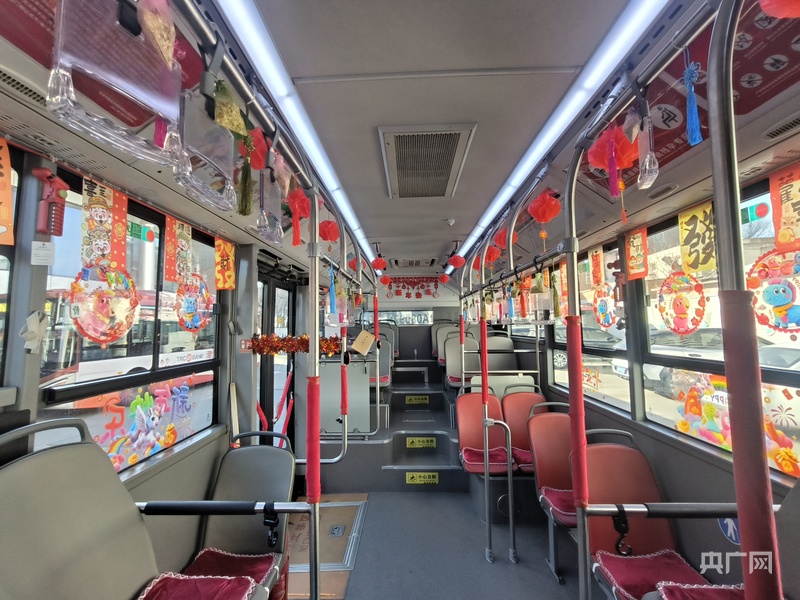“一上车就感觉到了浓浓的年味!”近日,市民王女士登上954路公交车时,被车内精心的布置深深打动。车窗上贴满了寓意美好的彩色窗花,车厢顶部悬挂着一串串小红灯笼和写满祝福的新年卡片,整个车厢洋溢着喜庆祥和的节日气氛。“这些装饰让人心里暖洋洋的,乘车体验特别好。”王女士高兴地说道。