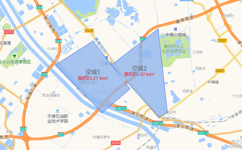 此次测试场获批空域范围示意图(央广网发 西青区供图)