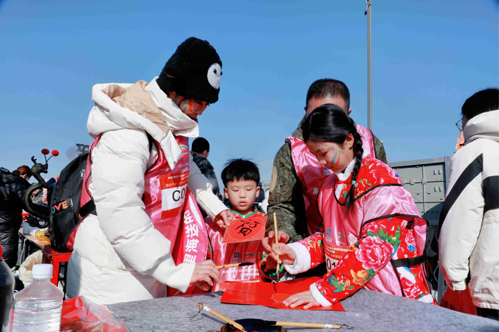 相较于传统定向赛,本次赛事的核心亮点是将体育竞技与民俗体验深度融合,以多元任务点位为载体,构建起“农文体学旅商”多元融合场景,让选手在奔跑中既感受体育活力,又沉浸式领略宁河冬日文旅与传统民俗的独特魅力。作为赛事的核心承载地,芦台大集不仅是竞技赛道,更化身沉浸式年味体验场——身着“黄金甲”的NPC(活动引导员)身旁,围满了踊跃参与互动的小朋友,选手们完成任务后获得的粮票,可兑换大集各类点位的体验资格,近距离感受市集的烟火温情。
