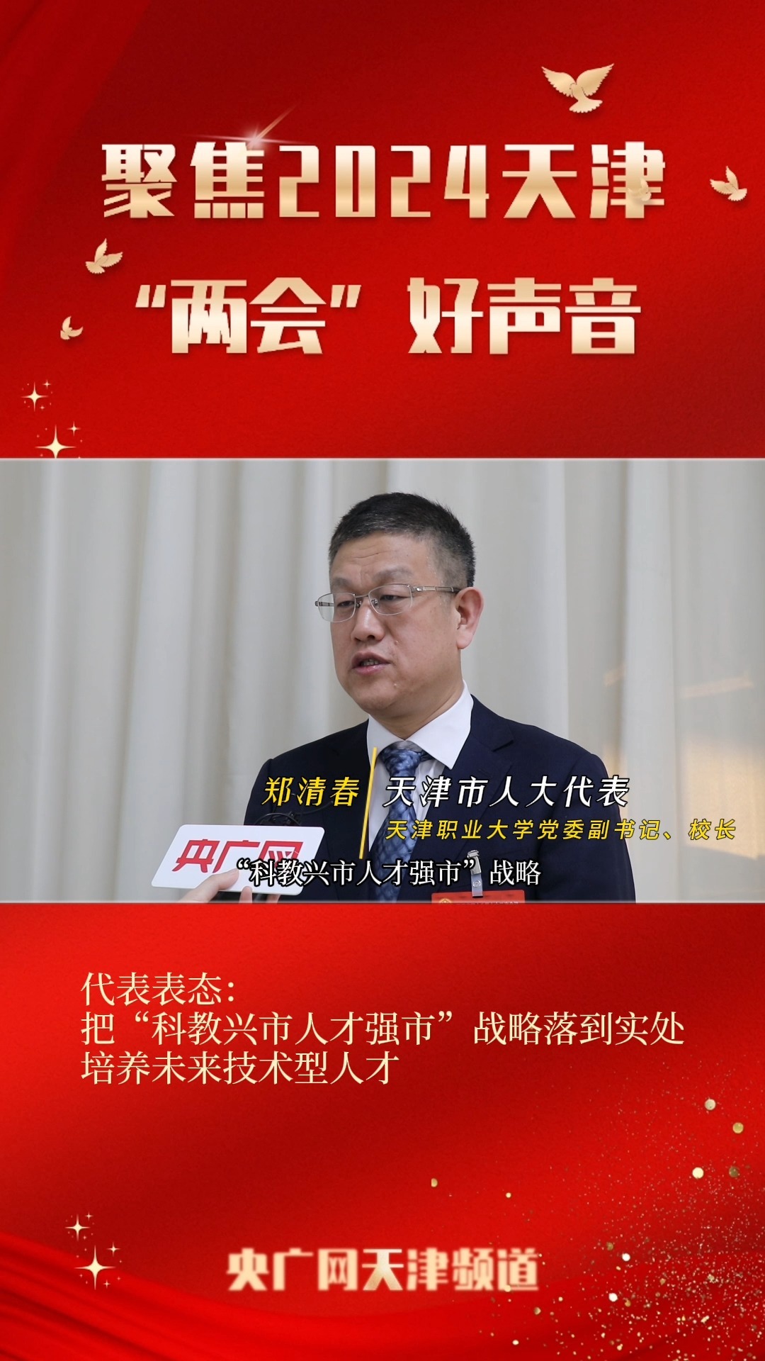 【天津“两会”好声音】郑清春:把“科教兴市人才强市”战略落到实处 培养未来技术型人才