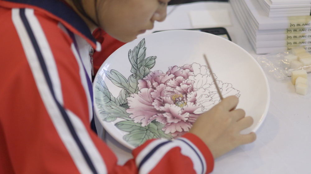 近日,2024年世界职业技术教育发展大会在天津举行。展会现场,多件精美的“中国白”陶瓷作品亮相,来自福建省德化职业技术学校的学生现场绘画创作,吸引了众多与会嘉宾的目光。