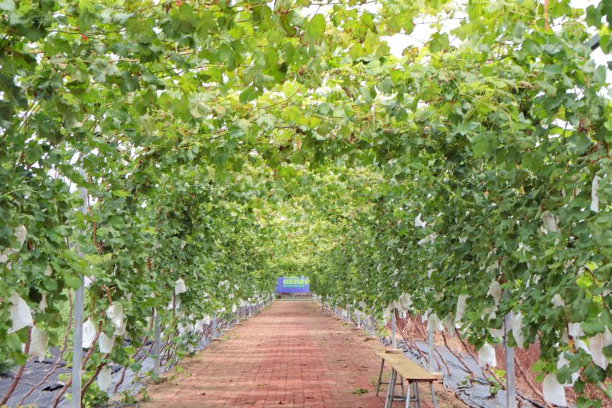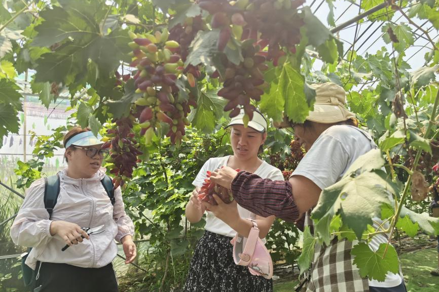 在基地的科技小院,天津农学院的研究生小窦正给游客讲解套袋技术:“您看这不同颜色的纸袋,白色透光性好,葡萄成熟快;蓝白渐变的能调节上下果穗成熟度。”精准的农技应用,让柒鲜女葡萄成了京津冀高端市场的“香饽饽”。试营业至今营地已接待京津冀游客5万余人。