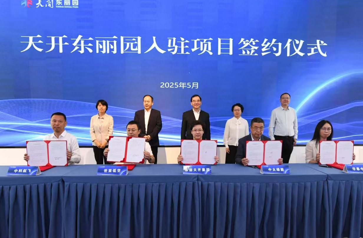 以“天开园”品牌与政策为牵引,天开东丽园通过“筑巢引凤”与“固巢养凤”双轮驱动,仅用2个月时间完成展厅设计施工和载体装修。2024年9月底,首批2.68万平方米载体具备迎接企业入驻的各项条件,实现存量载体的高效激活与产业价值的全面提升。依托天开园2.0政策包,园区通过一年时间初步形成低空经济与商业航天产业生态,并通过两次集中签约,推动园区从“单点招商”迈向“产业链构建”。