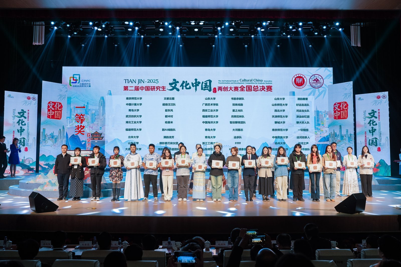央广网天津12月9日消息(记者韩雨晨)渤海之滨文心汇,两创潮涌聚津门。日前,第二届中国研究生“文化中国”两创大赛全国总决赛在天津师范大学举办。本届大赛共吸引来自全国443所高校的5398支队伍、13459名研究生踊跃参与。经过初赛选拔,96所高校的283支队伍、876名选手脱颖而出,齐聚天津展开为期两天的精彩角逐与深度文化交流。最终,来自福建师范大学的狮想青年团、山东大学的鹊华新声队、浙江理工大学的遗派新生等三支团队获本届中国研究生“文化中国”两创大赛“文化‘两创’之星”奖,同时评选出一等奖95个,二等奖188个。